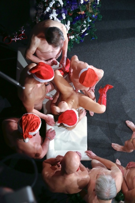 جولي سكاي هاي، الحسناء ذات الزي المثير لعيد الميلاد، تتعرض للاغتصاب الجماعي من قبل رجال مسنين.